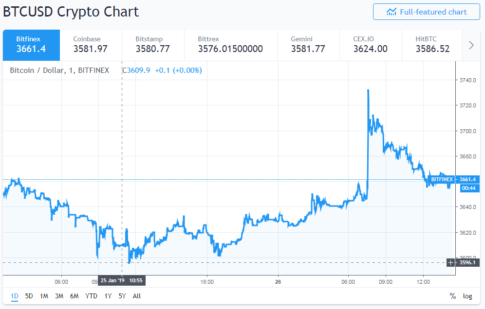 Currently, bitcoin is trading at around the $3,650 level after falling off the $3,700 resistance level which it touched earlier.