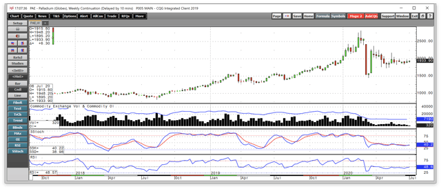 The price situation in platinum had become so dire that primary producers in South Africa trimmed output at higher-cost mines, causing the shortage of rhodium, which is a byproduct of platinum production. At a $1126.20 discount to palladium and an almost $5960 per ounce discount to rhodium, platinum is the wiser economic choice when it comes to most consumer requirements for platinum group metals these days. The value proposition for platinum continues to be compelling as we move into Q3, but that does not mean that the spreads at divergent historical levels cannot move further away from norms, as I wrote throughout 2019. Platinum has been a very frustrating investment, while palladium and rhodium have offered incredible rewards since 2016. It could be only a matter of time before a magnetic parabolic move in the platinum market occurs. In Q2, platinum displayed some signs of life, but the price will need to move above the $1035 per ounce level to encourage investment demand.