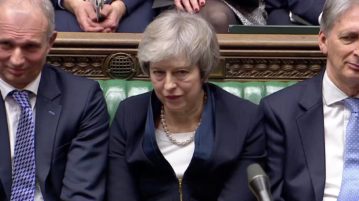 Prime Minister Theresa May sits down in Parliament after the vote on May’s Brexit deal,…More